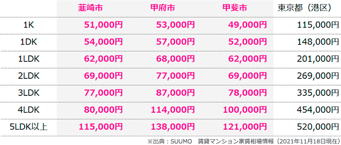 都心と比べて住宅価格がお手頃なところは山梨の魅力の一つ。住宅やマンションの購入が比較的検討しやすく、マイホームの購入が実現しやすい環境であると言えるでしょう。